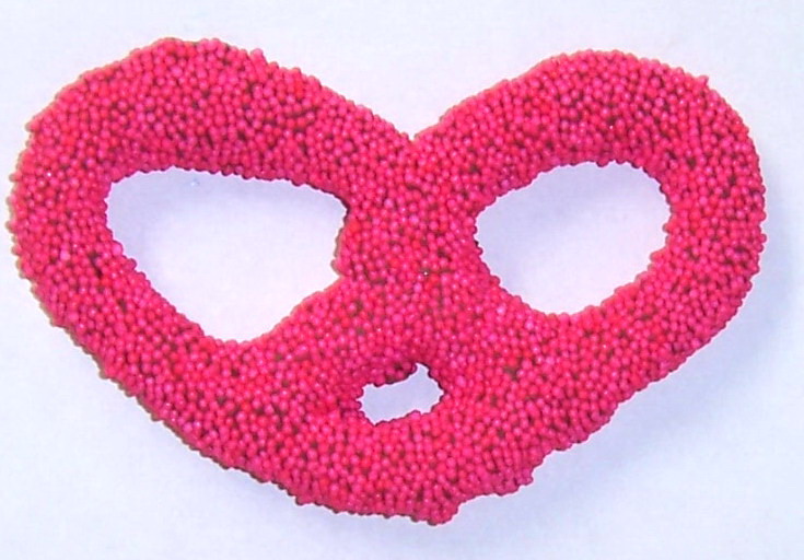 1/2 Pound Milk Chocolate Covered Pretzels with Pink Non-Pareils in a Decorative Bag
