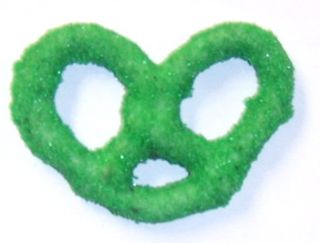 1 Pound White Chocolate Covered Pretzels with Green Sugar in a Decorative Bag
