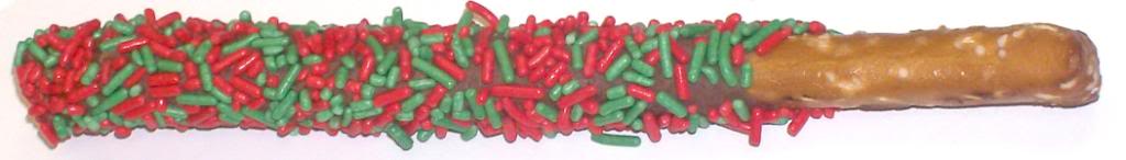> Chocolate Pretzel Rod with Christmas Jimmies