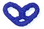 White Chocolate Covered Pretzels with Blue Non-Pareils in a Mini Tin