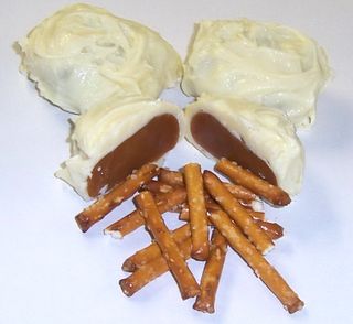 White Chocolate Pretzel Patties in a 1/2 Pound Decorative Box